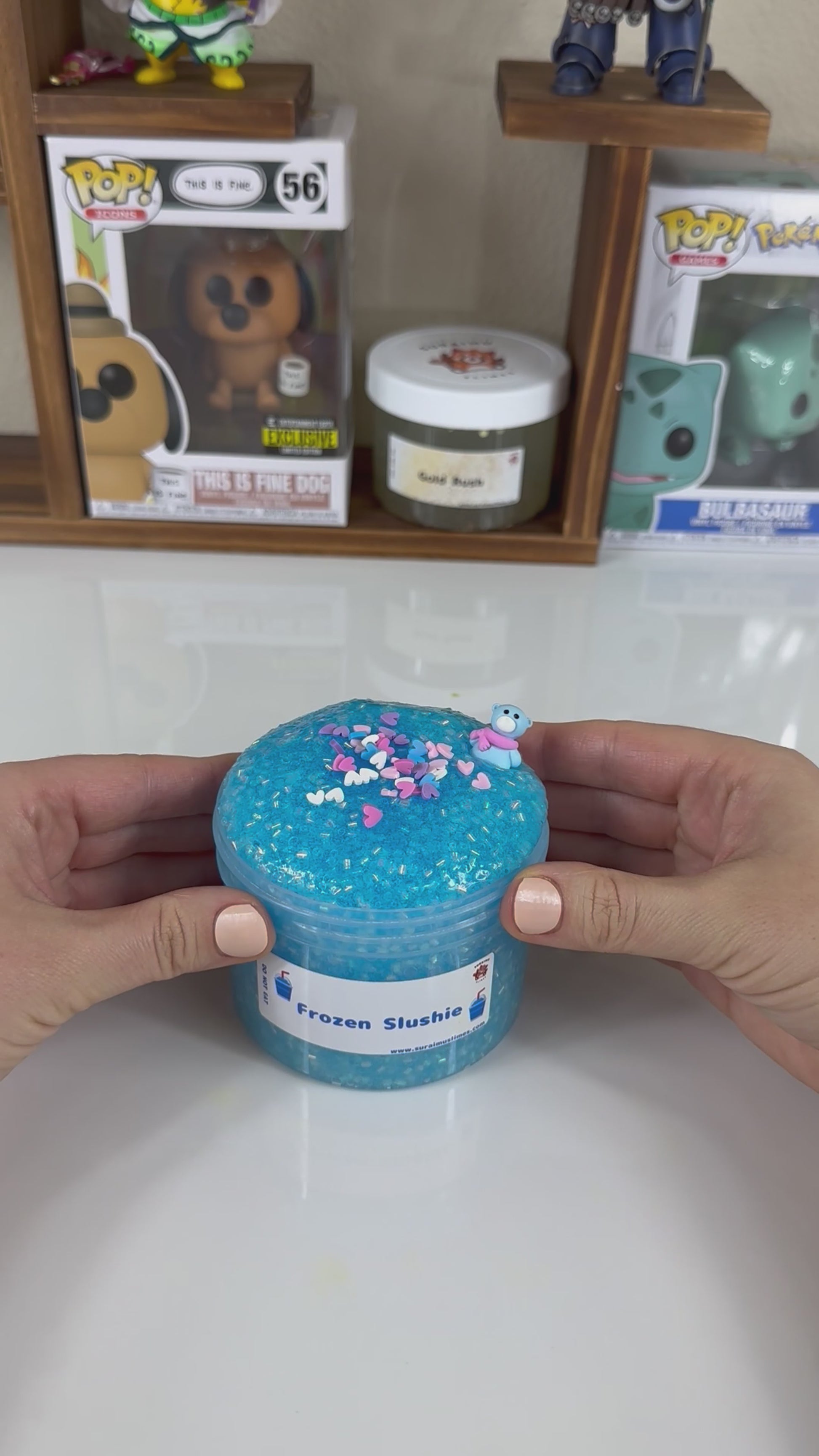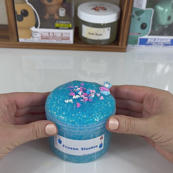 Description: Light blue clear based slime with iridescent bingsu beads, scented with tropical fruity oils.